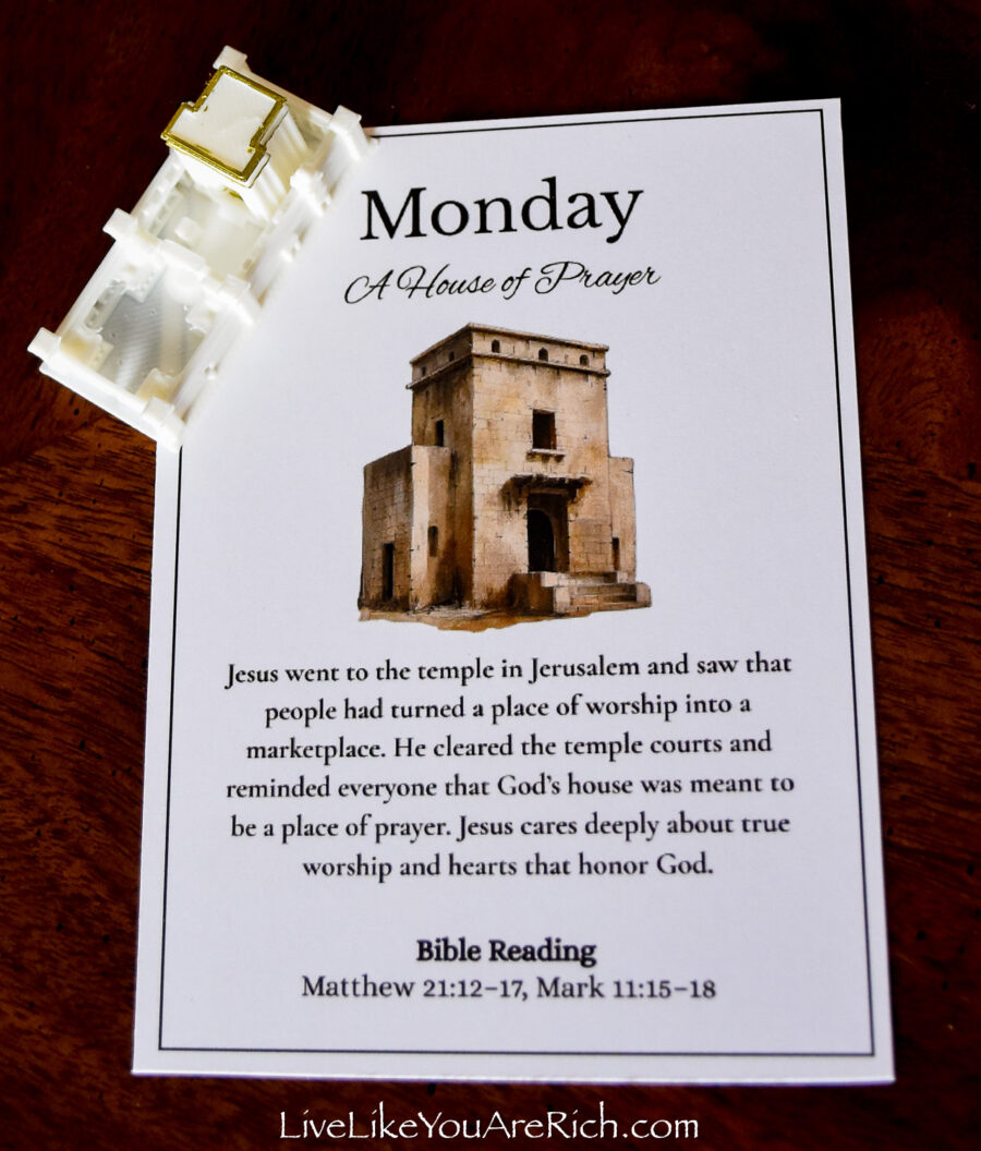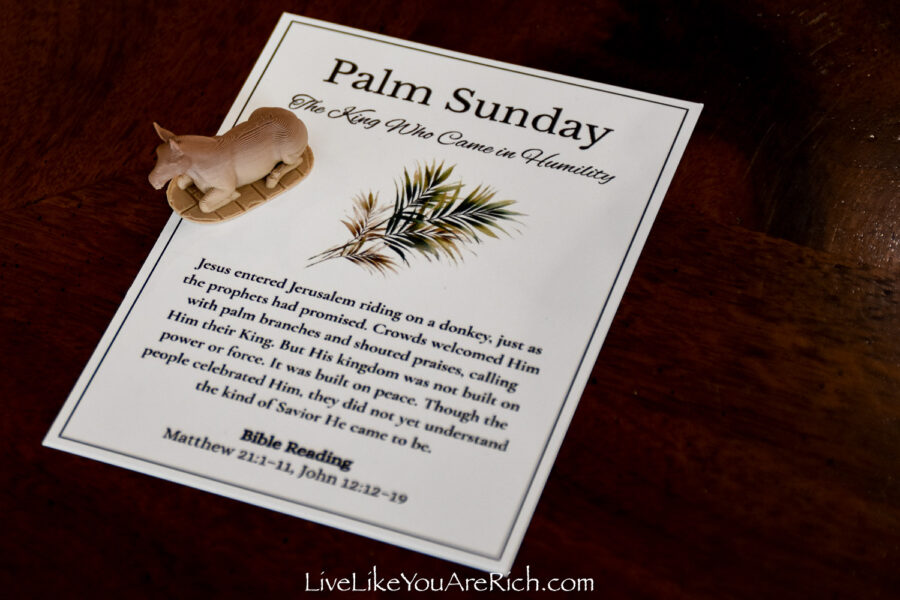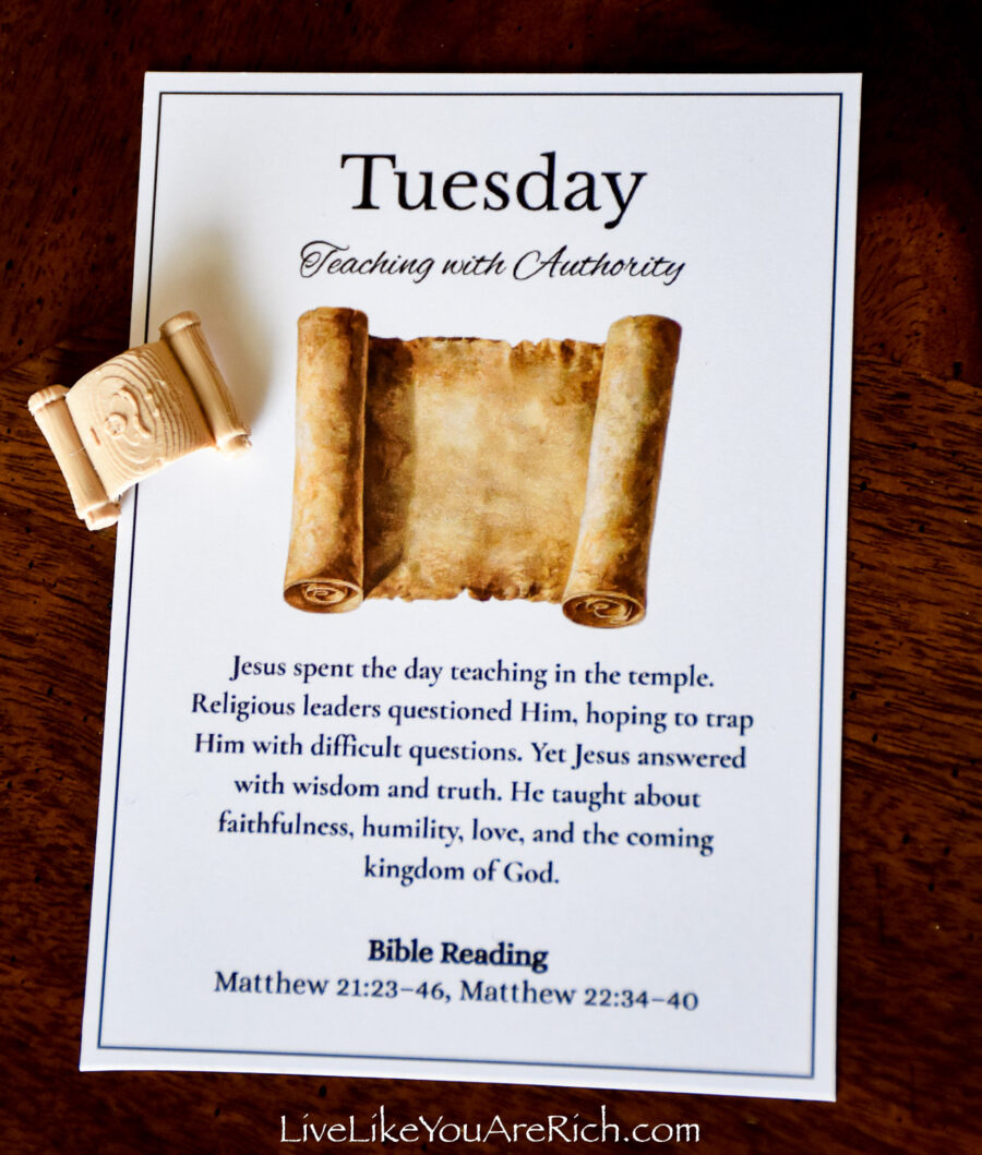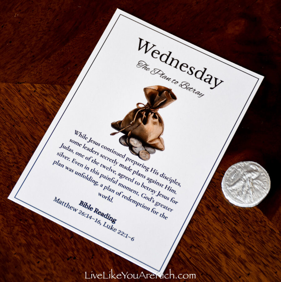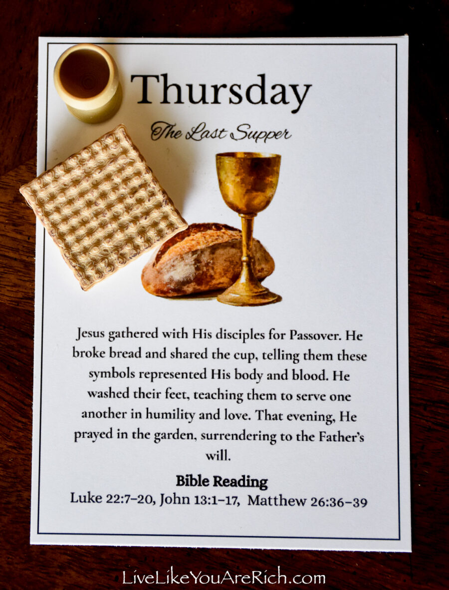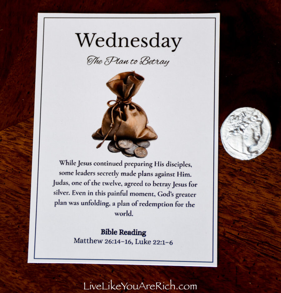 Our neighbor printed the cards off and cut them and we put them into a nice velvet bag for each child to be able to open and read each day of Holy Week leading up to Easter.