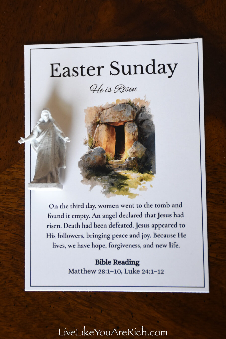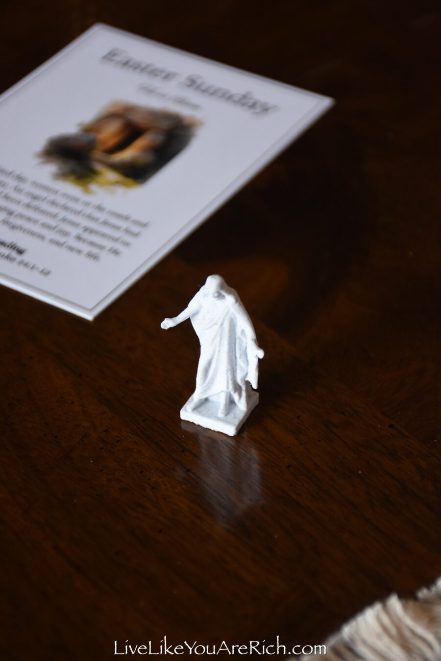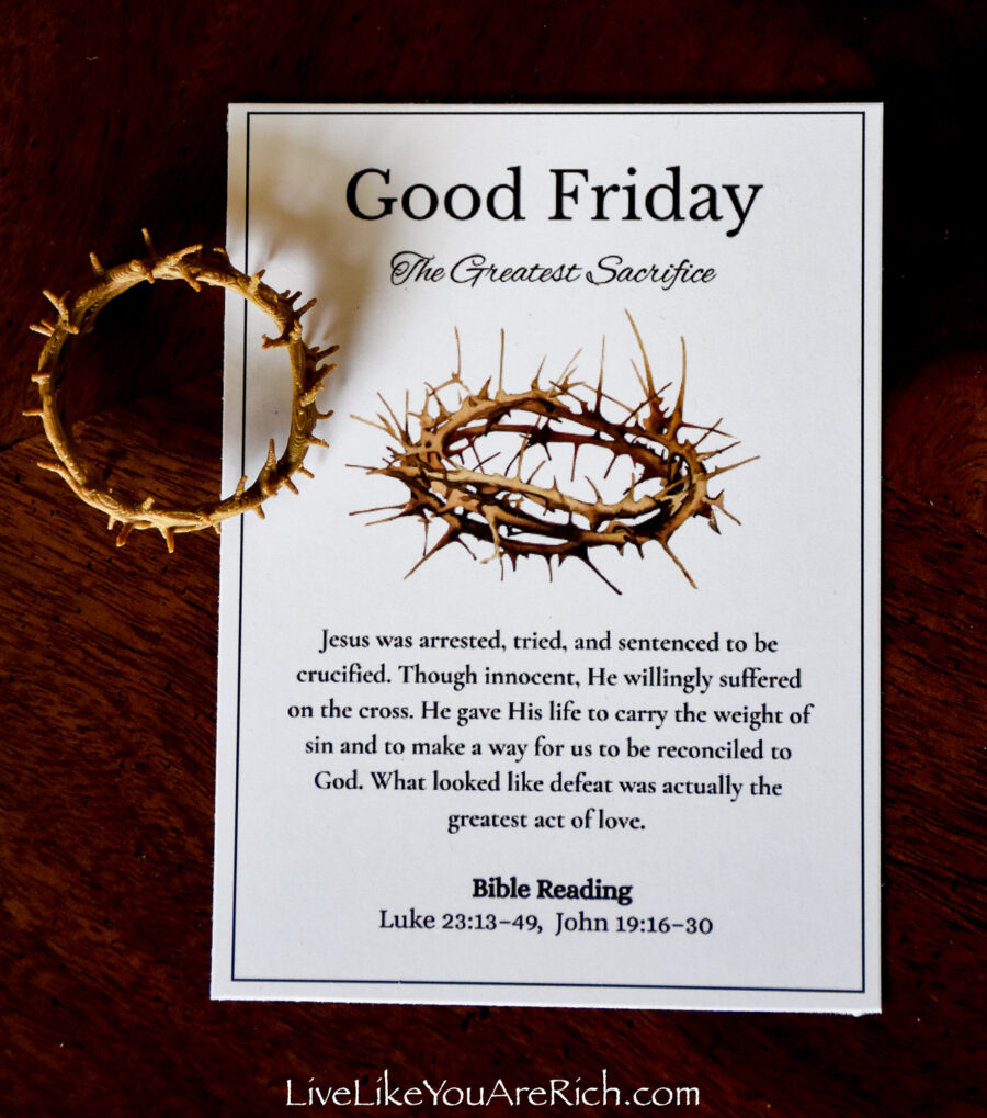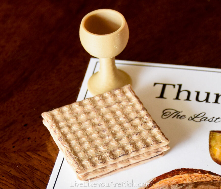 Our neighbor printed the cards off and cut them and we put them into a nice velvet bag for each child to be able to open and read each day of Holy Week leading up to Easter.