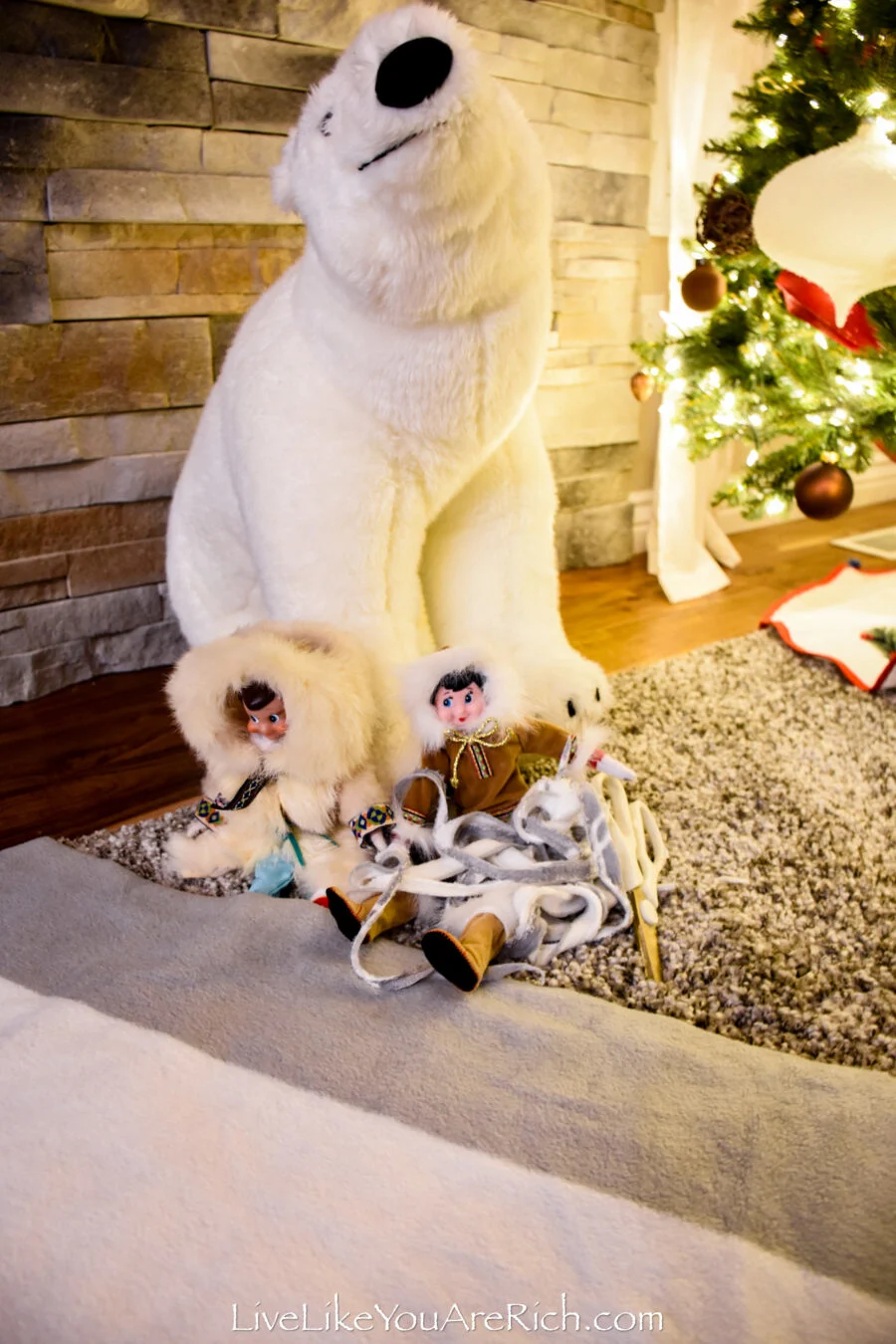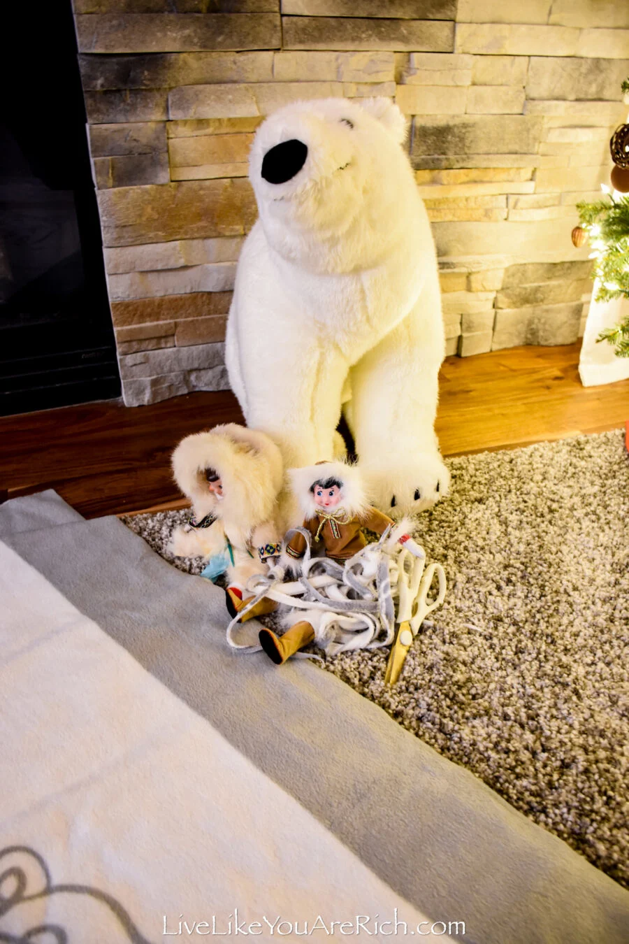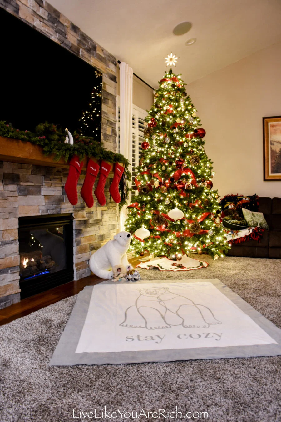 I love that this scene ‘tied in’ with the words, “Stay Cozy”: the fireplace, stockings, Christmas Tree, blanket, and Pepper and Winter’s arctic clothing.