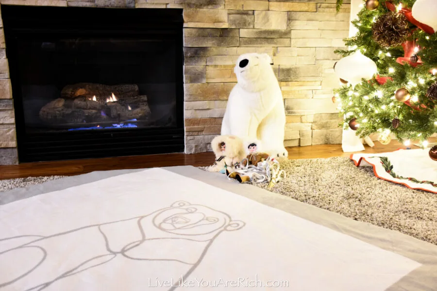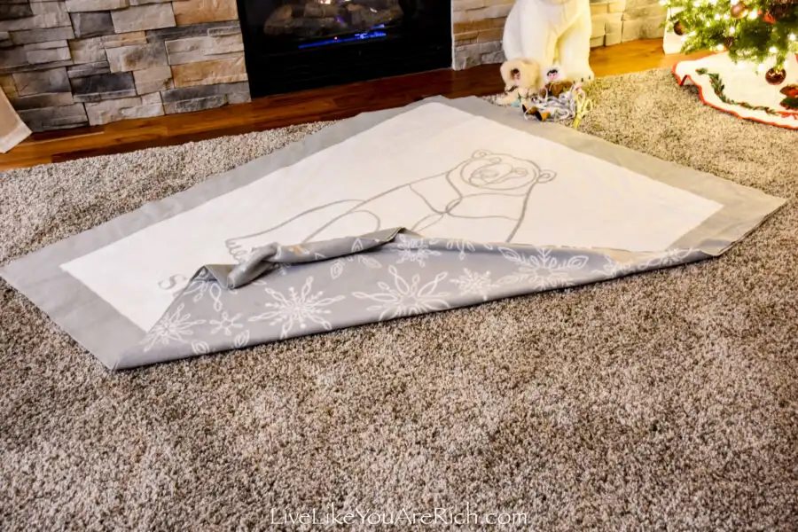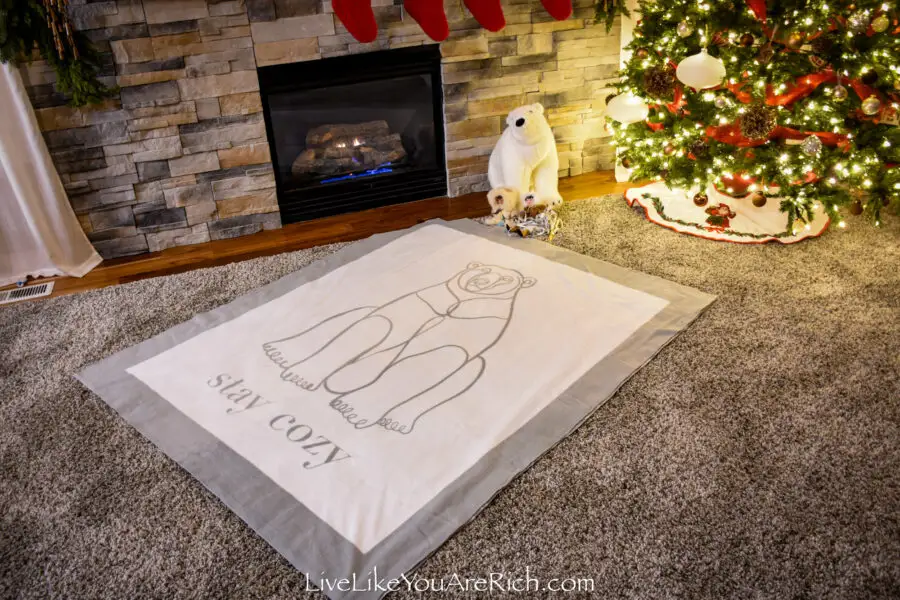 This year we will tie a polar bear blanket and on the back there are snowflakes.