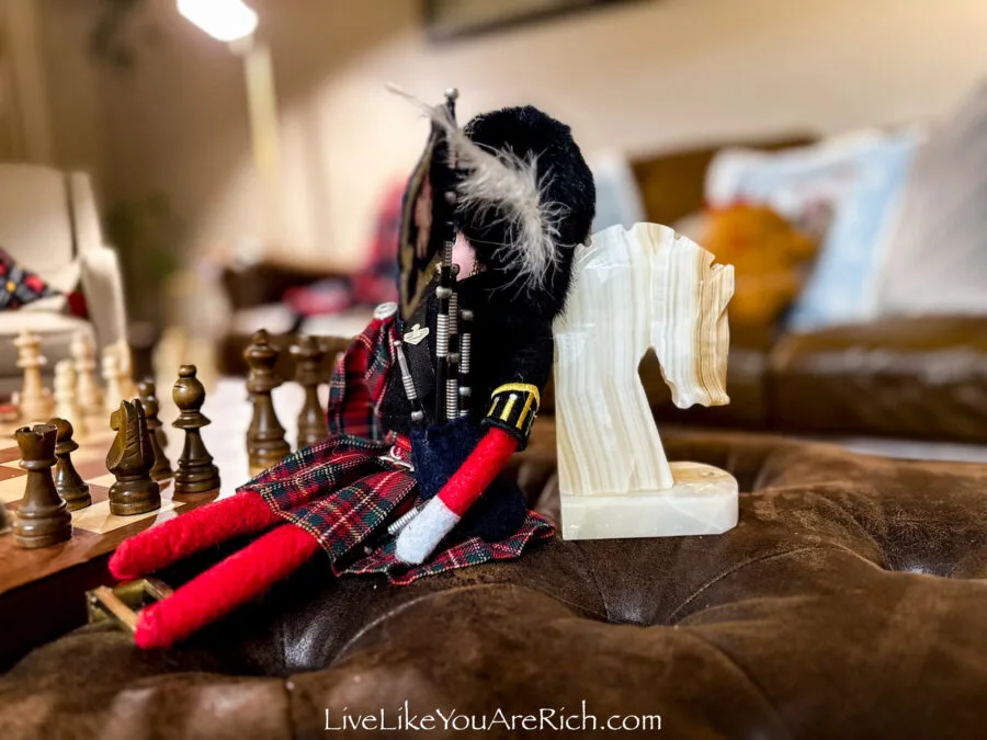 I talk about our elves Scottish outfits and bagpipes and where they may have come by them in this Highland Christmas scene.