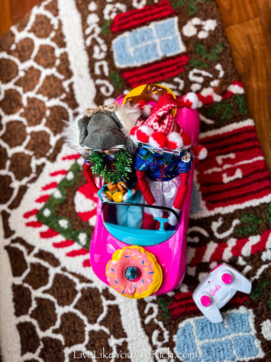 My kids had a BLAST taking turns driving them around the house. See the video on this page for just a snippet of the fun they had … and the fun lasted until it was time to go to bed. The elves abandoned their car for another activity last night.