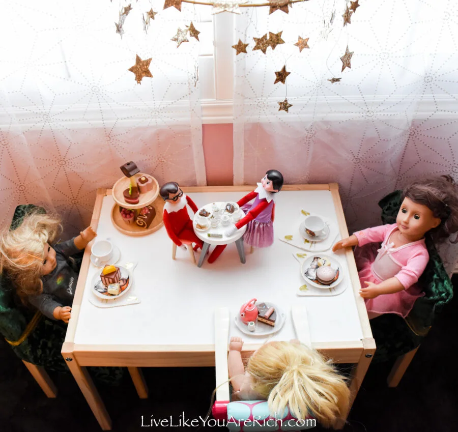 This is a scene our Elf on the Shelf sibling duo set up in my daughter, Amelia’s room.