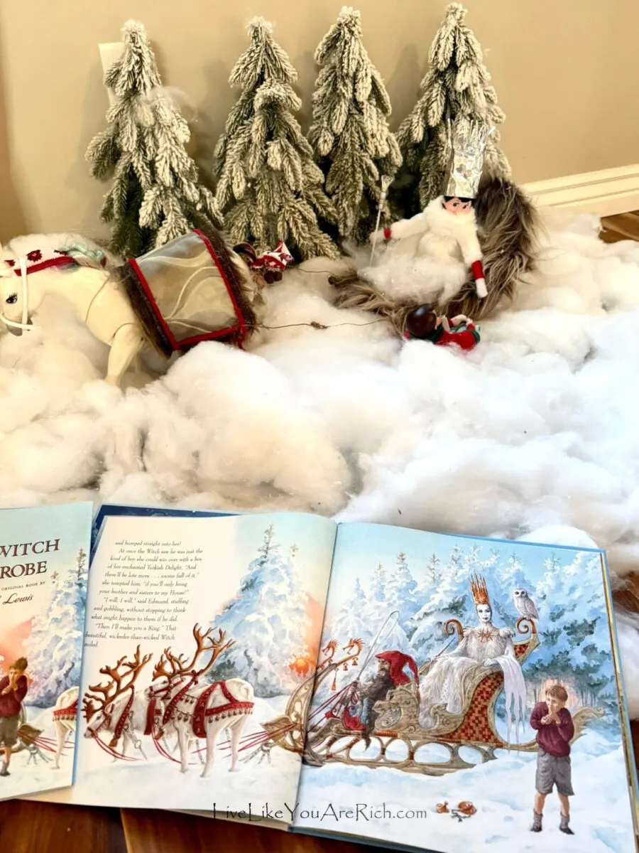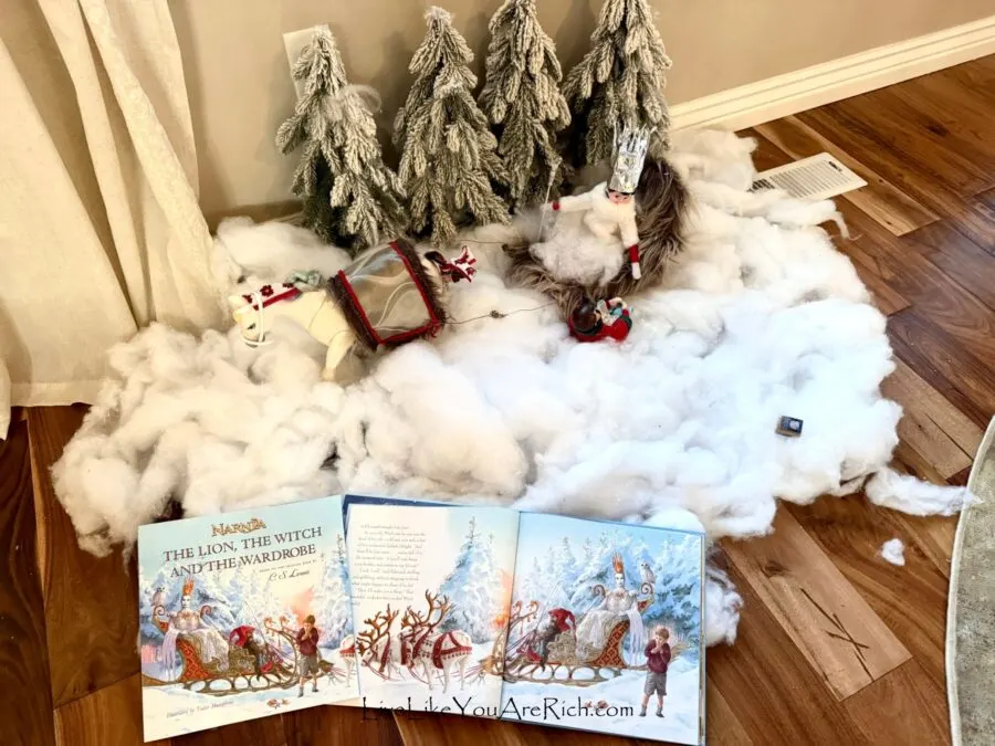 So today our elves got our book, The Lion, The Witch, and The Wardrobe, and put it out near this scene so that the kids would know what it was.