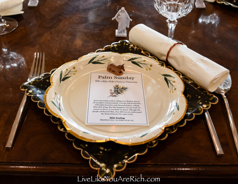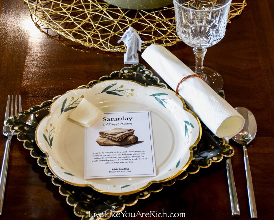 Because I had the Holy Week advent and my husband had printed out the statues for family, this tablescape came together in about 15 minutes.