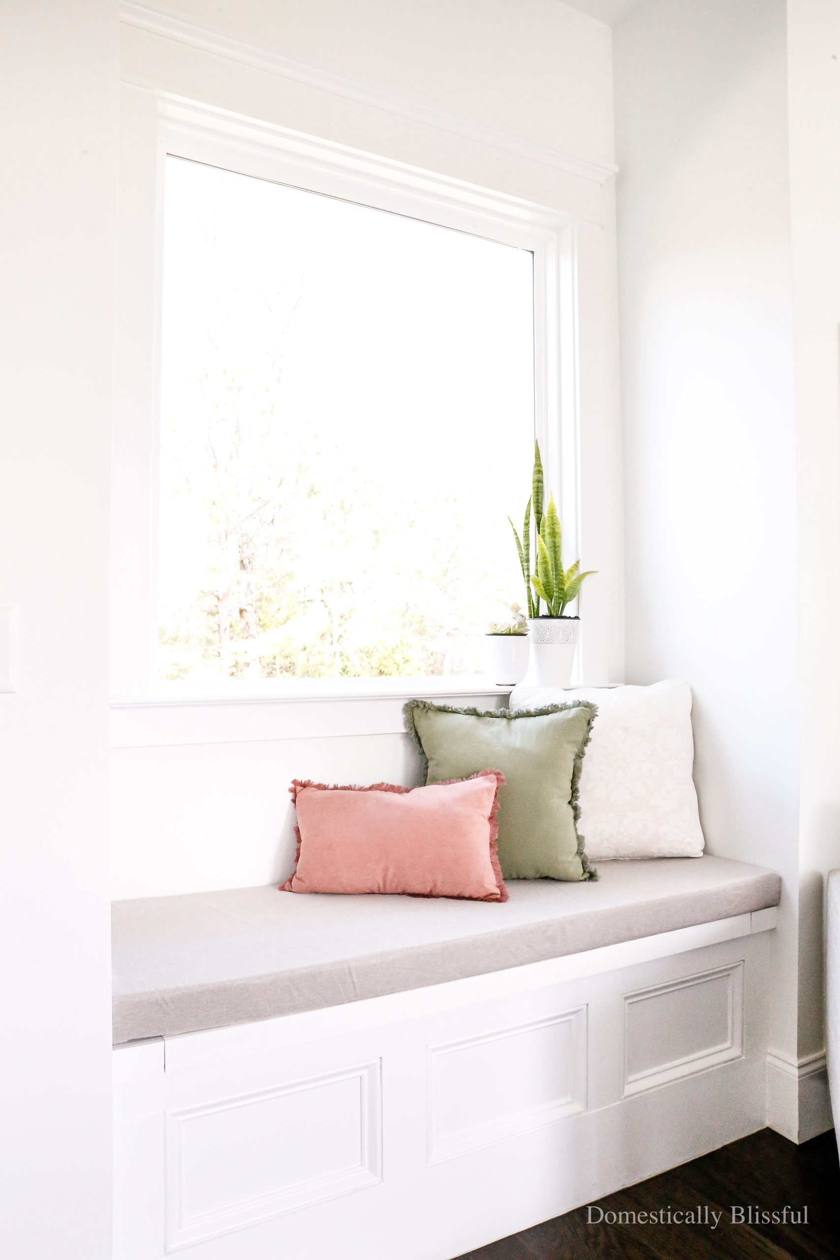 16. DIY No-Sew Window Seat Cushion – This no-sew DIY window seat cushion uses a curtain as fabric.