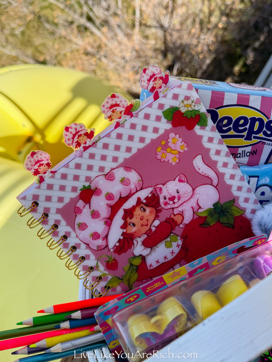 My daughter is into art and drawing so in her Easter basket this year she received a darling Strawberry Shortcake notebook and colored pencils.