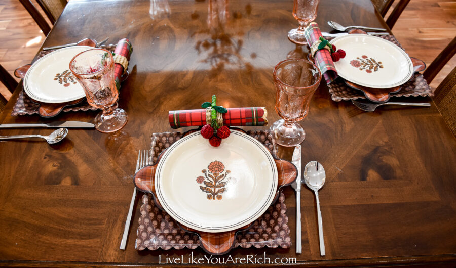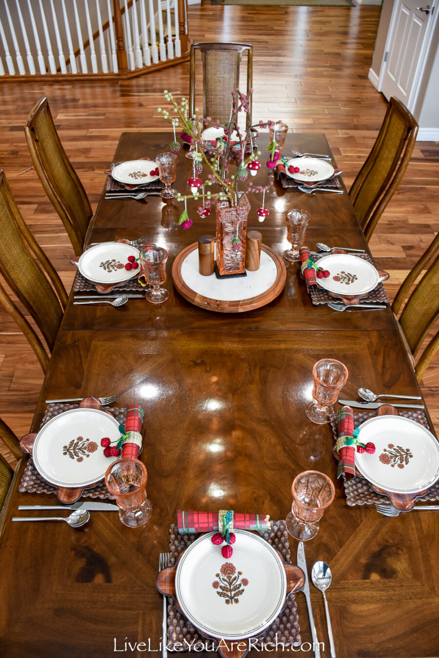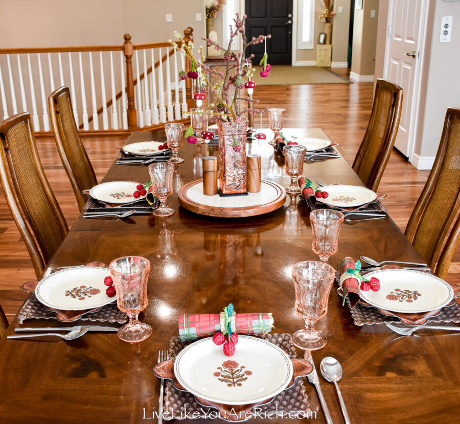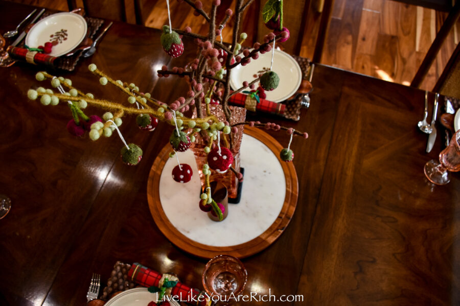 I saw these plates, napkins and cherry napkin rings and thought that they would go really well with a centerpiece I have that I purchased in Norway.