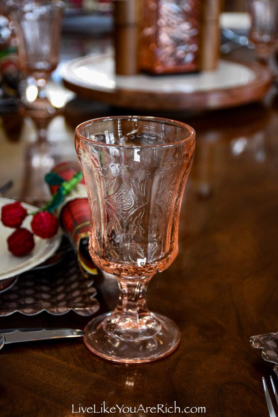 I inherited these pink crystal goblets from my grandmother because they matched the pink crystal vase perfectly.